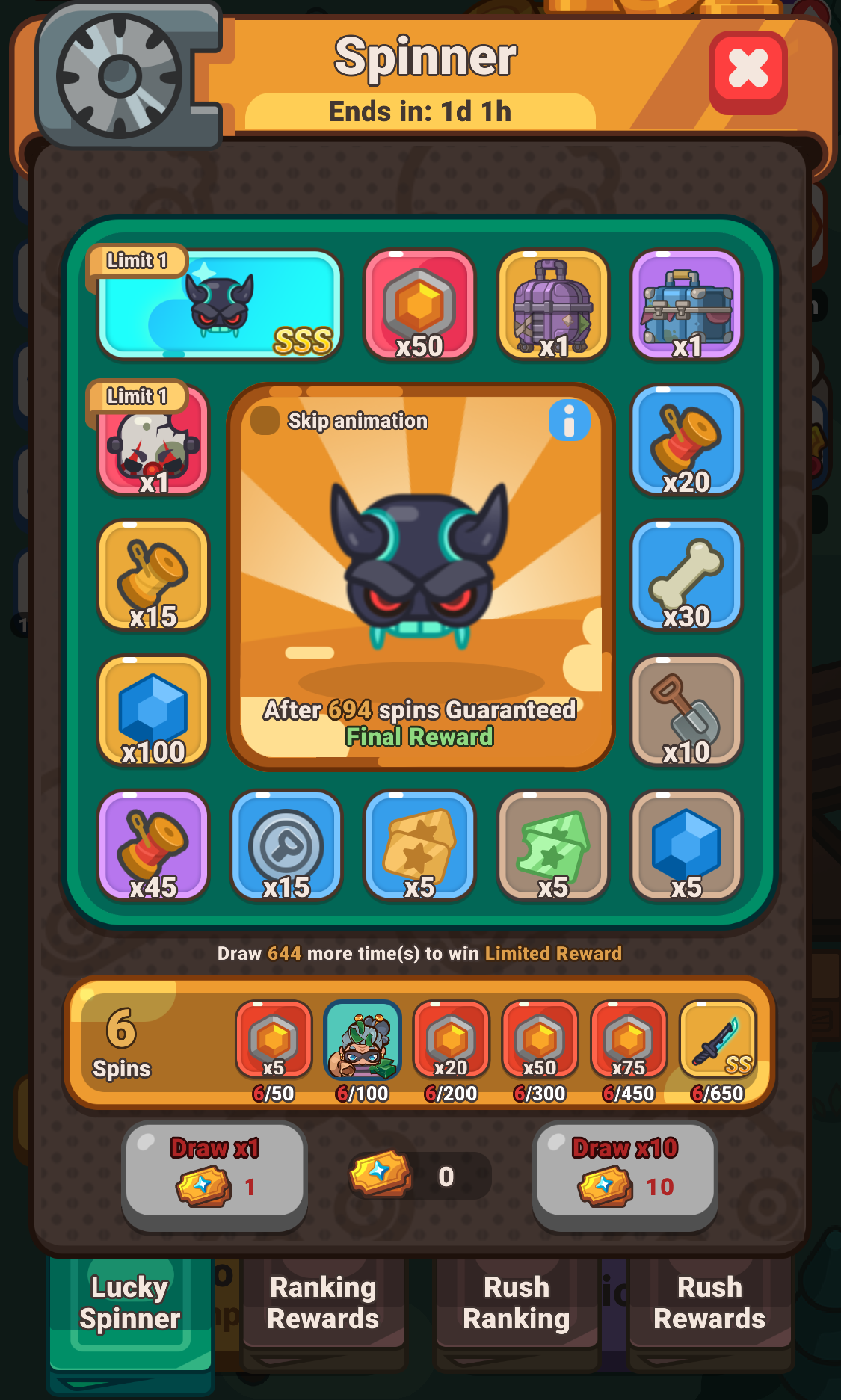 - Spinner event has only one ticket type: either a Legendary ticket or a Spinner ticket.