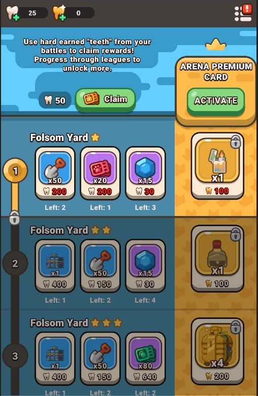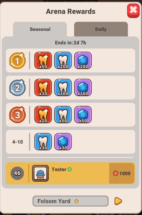 4. Arena Shop, where you can use earned Teeth to claim rewards.