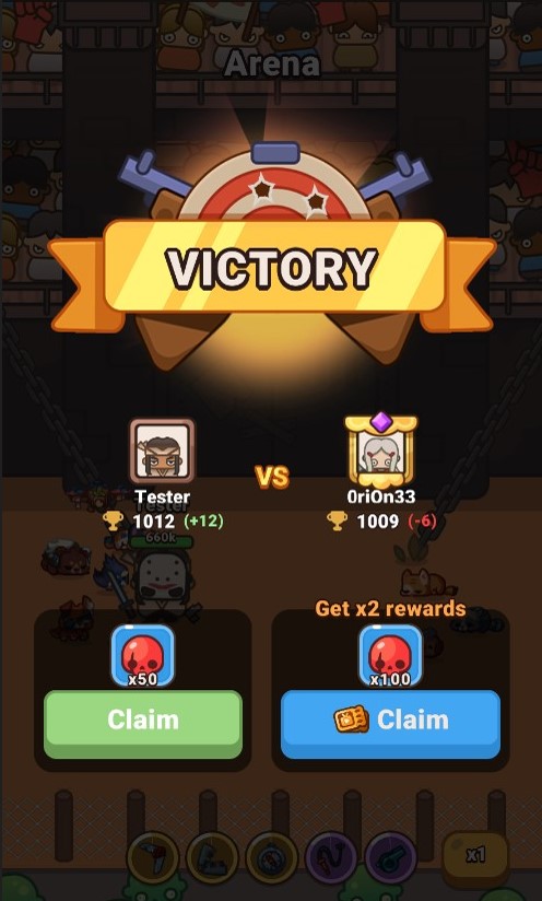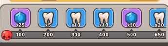 Besides Gems, you will earn Teeth and Golden Teeth - they are used in the Arena Shop to claim additional rewards.