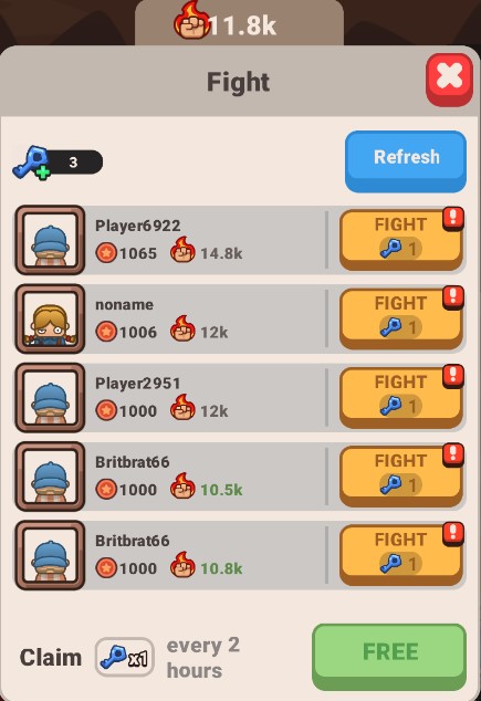 In the newly opened window, you will see several opponents available for attack. You can choose one of them and start the battle for 1 Arena Key.