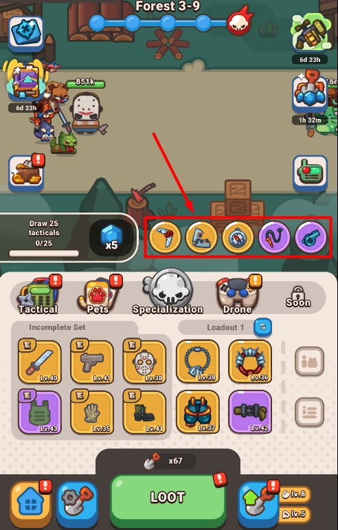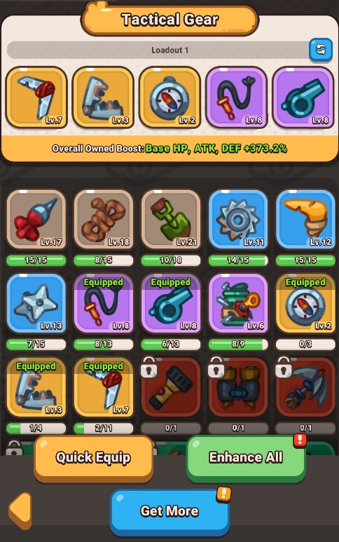 You can also enhance the gear by collecting the required amount of the same gear. Please note that each gear has its own stats (such as dodge, regen, life steal, etc.), which can influence the outcome of the battle.