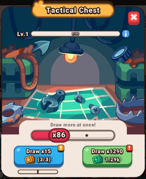 Get More button will take you to the Tactical Chest, where you can draw new gear.