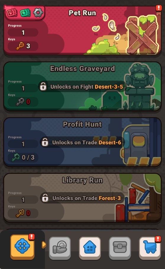 Has all the fighting game modes in one place: Pet Run, Endless Graveyard, Profit Hunt, Library Run and Arena. Each mode has its own mechanics and rewards to help you progress in the Fight game mode.