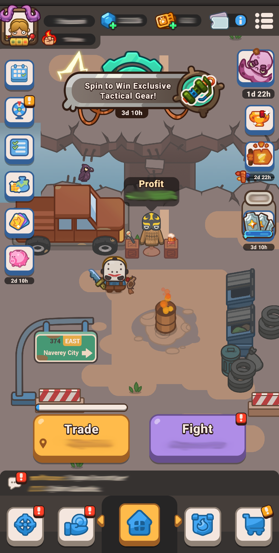 - The Trade button will take you to your current location window — this is the standard Idle Outpost game mode, where you start your journey.