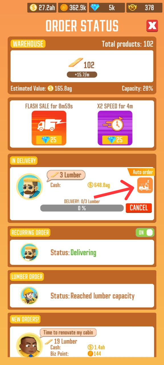 To keep them awake, upgrade your forklift manager. Higher sawmills require higher manager levels to automate forklifts, so upgrading early helps avoid downtime.