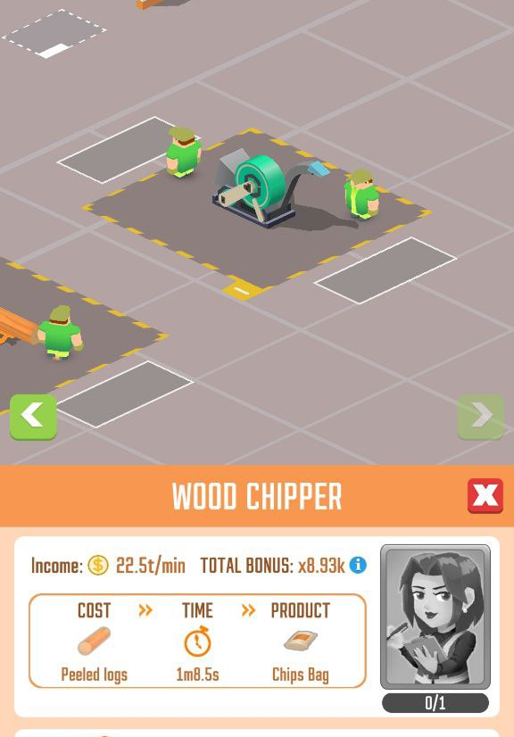 The second production line starts with a wood chipper. It processes peeled logs into chip bags.