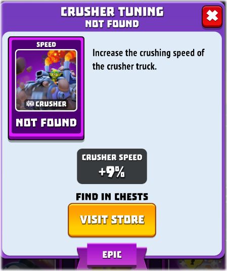 Upgrade Epic Cards to significantly improve your Crusher Truck’s power and speed