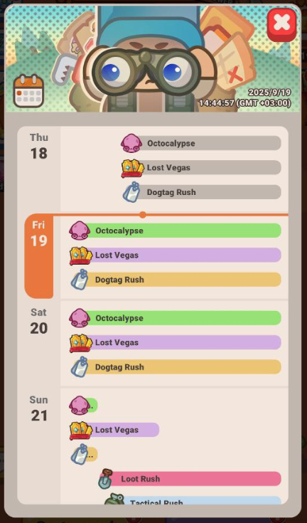 Каждое событие длится 3 дня, после чего следует короткий перерыв перед следующим. Ознакомиться с предстоящими темами событий можно в Календаре событий — каждое событие приносит свою тему и набор наград.