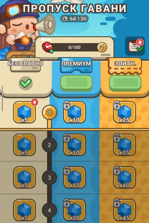 - После обновления Пропуска Гавани эти преимущества также сбрасываются. Чтобы снова открыть ряды, нужно приобрести Элитный или Премиумный пропуск для нового цикла.