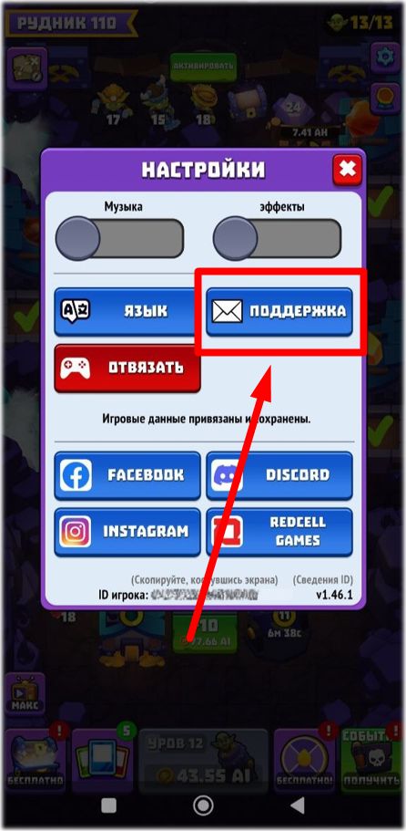 Нажмите кнопку Привязать и привяжите игру к своему Apple ID или Google аккаунту.