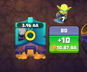 Когда вы уже прокачали прочие шахты до высоких уровней, то доход кузницы слишком мал, чтобы отражаться в общем количестве денег. При этом счетчик на ней крутится так быстро, что сливается в круг.