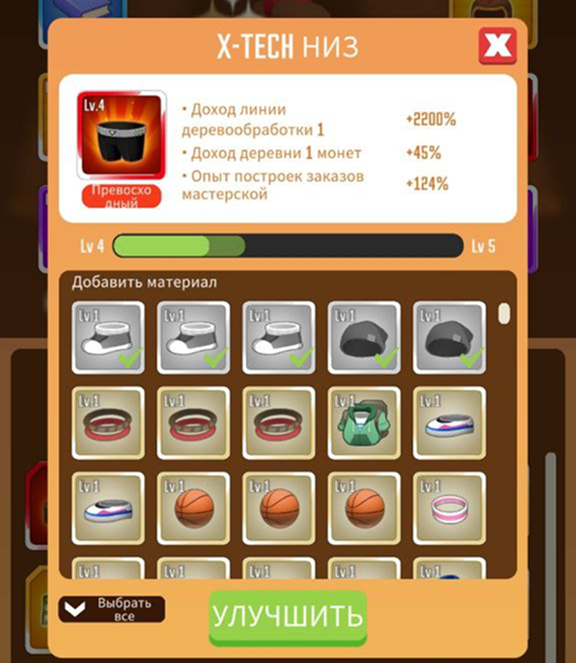 Каждый предмет имеет определённую ценность, которая засчитывается в улучшение: